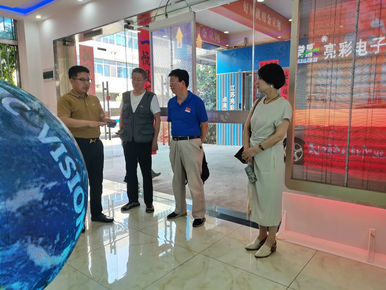 6月14日下午,常州市清華企業(yè)家商會榮譽會長莊舒行、商會秘書長徐文棟、副秘書長魏琴等一行來到江蘇亮彩電子有限公司,進行考察走訪。公司總經(jīng)理章九余熱情接待了大家。