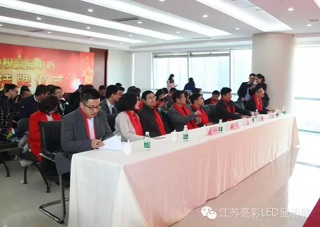 常州市經(jīng)信委副主任、機(jī)關(guān)黨委書記-章禮;常州市經(jīng)濟(jì)合作處處長、民建綜合二支部主委-劉偉俊;常州經(jīng)信委、中小企業(yè)發(fā)展促進(jìn)中心主任-胥加祥;常州市三會(工業(yè)經(jīng)濟(jì)聯(lián)合會、企業(yè)聯(lián)合會、企業(yè)家協(xié)會)綜合部部長-朱婭翡;鹽城商會會長、江蘇開吳建設(shè)有限公司董事長-趙海東;常州清華紫荊學(xué)會會長、江蘇通潤建設(shè)有限公司董事長-高峰;中央畫院常州分院副院長、常州儒商研究學(xué)會會長、常州市霞峰文化藝術(shù)傳播有限公司藝術(shù)總監(jiān)-陸建國;江蘇嘉和利管理顧問有限公司總裁,江蘇省會計學(xué)會副會長,常州市注冊會計師協(xié)會副會長,注冊高級企業(yè)風(fēng)險管理師,高級會計師、中國注冊會計師、復(fù)旦大學(xué)總裁班、上海交通大學(xué)總裁班特聘教授,中國注冊會計師協(xié)會、江蘇省注冊會計師協(xié)會師資 ,中南財經(jīng)政法大學(xué)兼職教授, 永誠聯(lián)合會計師事務(wù)所首席會計師-蔡桂如;常州小微金融服務(wù)中心-顧正義;常州中興華達(dá)董事長-張禮建;江蘇金算盤投資管理有限公司董事長-韓芬;江蘇股權(quán)交易中心、江蘇小微企業(yè)融資產(chǎn)品交易中心市場發(fā)展部副總經(jīng)理-董汝洋;江蘇股權(quán)交易中心市場發(fā)展部高級經(jīng)理-徐帆等人出席現(xiàn)場見證了江蘇亮彩電子的掛牌儀式。